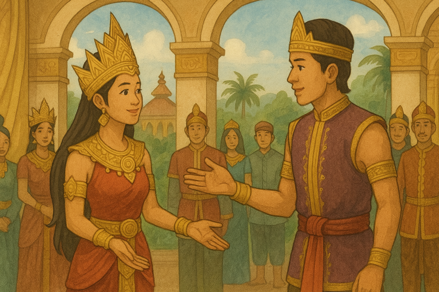 - Simbol kecantikan dan kebijaksanaan – Putri Karang Melenu digambarkan tidak hanya cantik, tetapi juga bijaksana.